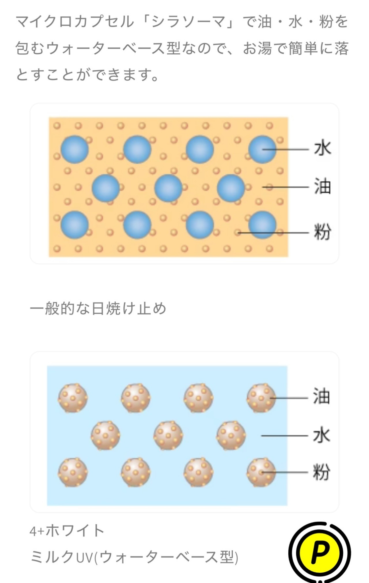⚫︎マイクロカプセル「シラソーマ」で油・水・粉を包むウォーターベース型なので、お湯で簡単に落とすことができます。